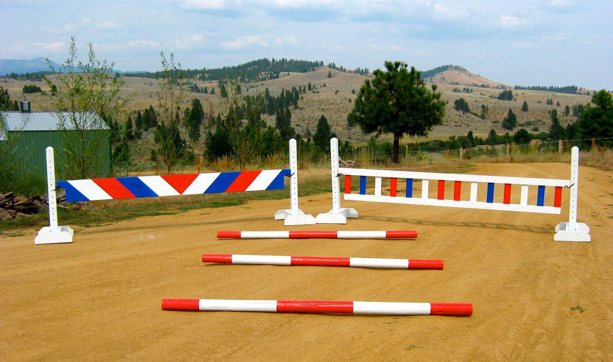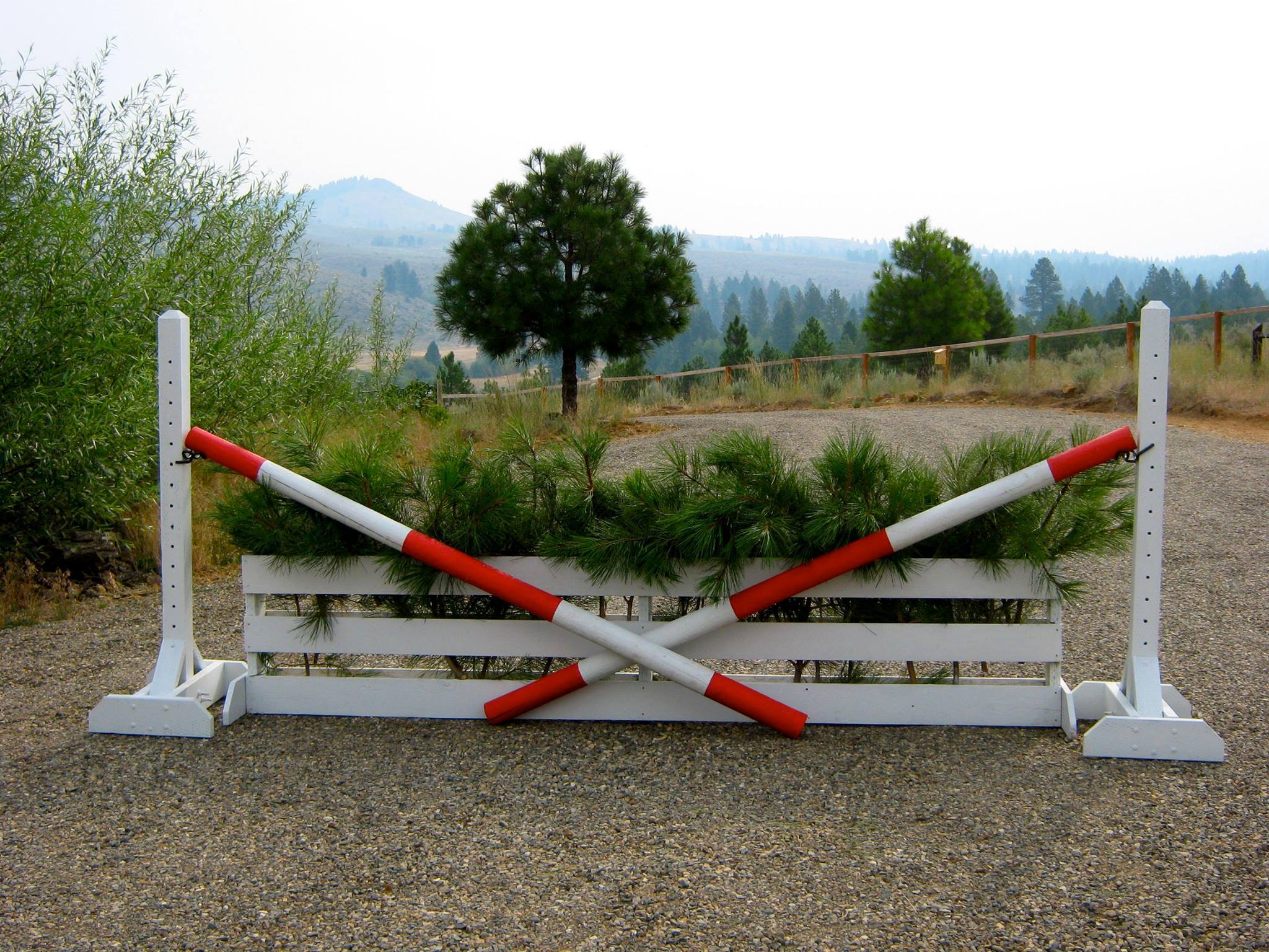 Our wood jumps are put together with lags and bolts, then primed and painted. Pressure treated wood is used in all ground contact areas.